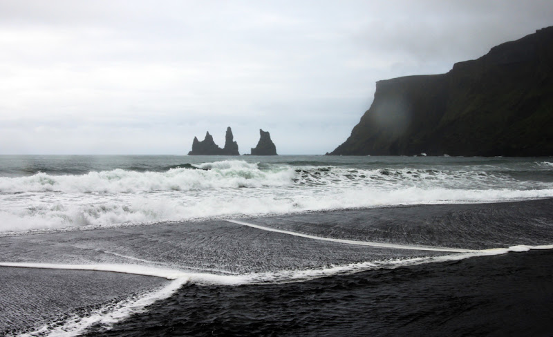 Хотя здесь пляжи отличаются своей суровой красотой: свинцовые волны накатывают на черный песок. Нереальный пейзаж, какой-то инфернальный. Заставляет задуматься о вечном. Особенно, в такую погоду.