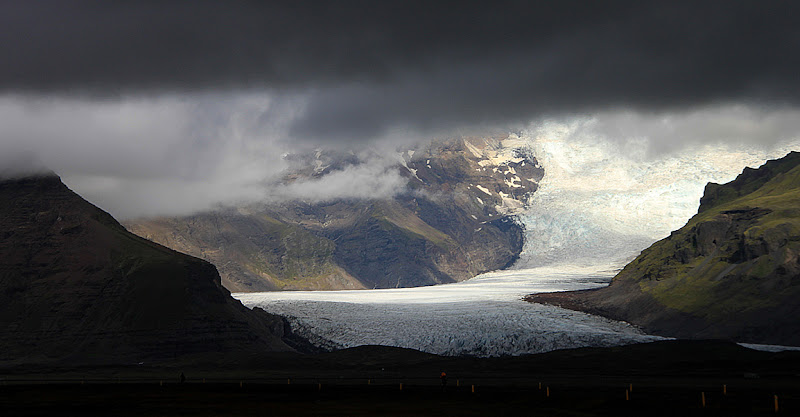 Подъезжаем к национальному парку Скафтаффель. Небо снова хмуриться. Только что мы грелись в лучах солнца, и вот уже в дождевики приходиться закутываться.