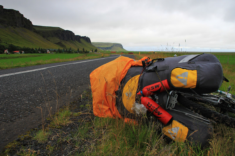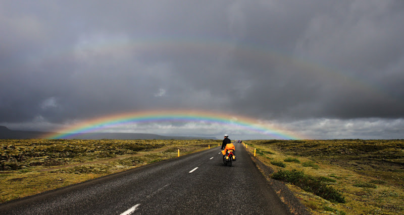 Целый день мы просидели в Вике, ожидая, когда закончится шторм. Непогода и закрытый в честь праздника супермаркет (где планировалось закупить провиант), не позволил осуществить поездку автостопом к месту рождения айсбергов. К ночи ветер поутих, но с утра выезжали мы под дождем. Можно сказать, привычно. Через 40 километров был запланированный поворот в горы, но впереди – крупнейший ледник Ватнайокуль, отправляющий бесчисленные айсберги в далекое плавание… Разве возможно не посмотреть на это своими глазами? После небольшого совещания на развилке, было принято решение отложить горную часть еще на 500 километров и отправиться дальше на восток. Небеса благосклонно отнеслись к затее, наградив нас красивейшими радугами, видами и солнечным утром. Насладится нашей дорогой и открытиями по дороге к айсбергам, я и предлагаю сегодня.